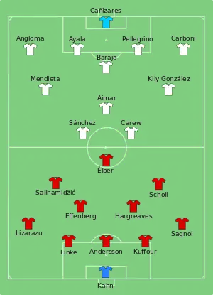 На 6-й минуте игрок «Баварии» Мехмет Шолль не реализовал пенальти, попав во вратаря.