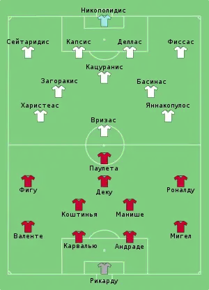 - UEFA EURO 2004 - History - Portugal-Greece Statistics (англ.) (недоступная ссылка). UEFA (4 июля 2004). Архивировано 12 декабря 2011 года.