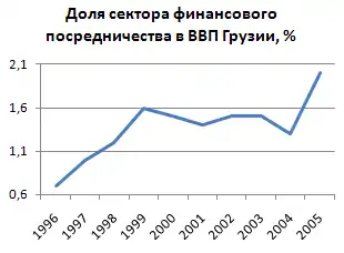 На 2005 год, доля сектора финансового посредничества в ВВП Грузии составляла 2 %.[2]