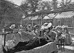 К 1893 году Финсен занялся пропагандой использования красного света для лечения последствий оспы. Он утверждал, что лишь солнечный свет раздражающего высокочастотного спектра излучения, пропущенный через красный светофильтр, может ускорить заживление кожных поражений и тем самым предотвратить образование безобразных рубцов и шрамов. После того как демонстрация «красных комнат» прошла успешно, Финсен ушел с университетской кафедры хирургии и целиком посвятил себя медицинским аспектам светолечения.