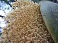 Цветки маленькие, желтоватые, произрастающие на соцветии 45 см в длину. Плод — костянка, с тонкой мякотью.