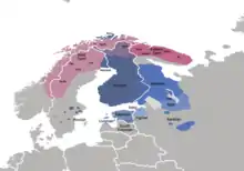 Карта распространения финно-саамских языков