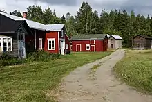 Традиционным материалом является древесина. Постройки были срубными и зачастую обшивались досками, красившимися в красный цвет. Наличники и дверные проёмы красились в белый. Крыши — двускатные, крылись дранкой или досками, а для прочности придерживались валунами. Изначально традиционные постройки не имели фундамента и стояли на больших валунах и пнях, в начале XIX века в городах появляется каменный фундамент, который затем распространяется в деревнях.