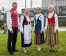 Старые формы одежды западных районов Финляндии известны плохо. С конца средних веков здесь стал обычным костюм, состоявший из рубахи и блузы, поверх которой надевалась юбка на поясе. Сначала юбки шили из однотонной ткани, затем распространились полосатые и клетчатые. Поверх блузы надевался лиф (фин. liivi), поверх юбки повязывался передник. Широко распространены были наплечные платки. Замужние женщины носили различного рода чепцы, девушки — открытые головные уборы. На севере одежда женщин была сходна с западной, на островах Финского залива — напоминала североэстонскую[27].