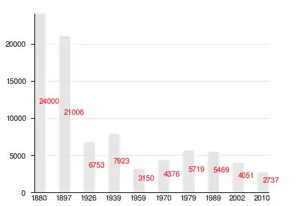 | 1897[3] | 1926[4] | 1939[5] | 1959[6] | 1970[7] | 1979[8] | 1989[9] | 2002[10] | 2010[1][2] |