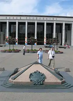 - знак «Нулевой километр» на Октябрьской площади в Минске (скульптор А. Финский, архитектор А. Сардаров)[9]