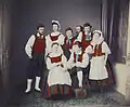 Группа людей в западнофинских народных костюмах, 1866 год. Третий справа во втором ряду — Цакариас Топелиус.