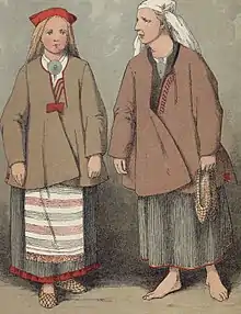 На островах Сейскари и Мощный женщины носили короткие блузки, схожие с североэстонскими кяйсед (эст. käised).