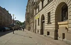 - дом 9 — доходный дом с торговыми помещениями С. П. Петрова. 1878—1879, архитектор П. Ю. Сюзор