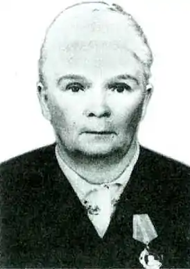 Во время Великой Отечественной войны была эвакуирована в Павлодар, где и прожила до конца жизни. Работала на Павлодарском судоремонтном заводе маляром, затем бригадиром маляров. Была одним из зачинателей социалистического соревнования в Павлодарской области, ударницей коммунистического труда, ударницей девятой пятилетки[1][2]. Ветеран труда Павлодарского судоремонтного завода[3].