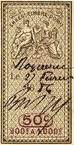 Канцелярские сборы взимались за услуги аппарата управления по выдаче различного рода справок и свидетельств. В России первые марки канцелярских сборов вышли в 1887 году[15].