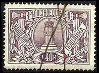 В группу прочих входят знаки следующих сборов: марки ярмарочного сбора, налога на собак, таможенного сбора со стоимости продуктов животноводства, рогаточного сбора, взимаемого при проезде возов и при прогоне в городской черте лошадей[17] и крупного рогатого скота, статистического сбора, сбора на городские нужды, дорожного сбора, мостового сбора, рыночного сбора, сборов за осмотр электрических осветительных и газовых устройств, эмигрантского сбора. К знакам обязательных сборов также относятся квитанции, выдаваемые административными органами при взимании различного рода штрафов и сборов на принудительные услуги, например, за услуги вытрезвителей.