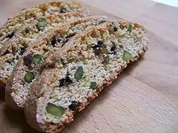 Слева направо: фисташковая роща и собранные плоды, орехи, очищенные орехи (ядра), хлеб с фисташками | ||||||||||