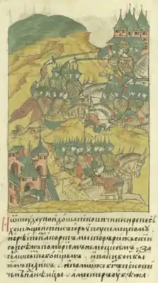 ![]() Битве под Киремпе псковичей с ландмейстером Кнрадом, бегство ливонцев | |