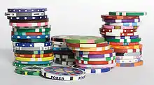 Стек — это стопка из 20 чипов. Её постоянно использует крупье для подсчёта фишек. Для того, чтобы собирать фишки со стола, когда они разбросаны, используют «чипование» — сбор фишек со стола руками. На конец фишки надавливают большим пальцем, а указательным с другой стороны кладут в ладонь. Хороший дилер может делать 2 стека с помощью чипования за 6 — 10 секунд.