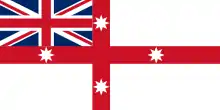 Королевский австралийский военно-морской флот был учреждён 5 октября 1911 года. Корабли флота были обязаны вывешивать в кормовой части белый английский военно-морской флаг, а на гюйс-штоке — флаг Австралии[45][46][47]. Хотя правительство Австралии выступало за использование на австралийских военных судах синего кормового флага, австралийские офицеры, как правило, вывешивали «Юнион Джек»[48]. Английский белый флаг был окончательно заменён на австралийский белый военно-морской флаг только 1 марта 1967 года.[46].