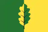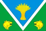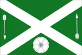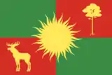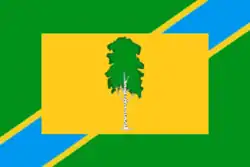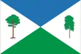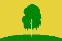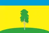 Прямоугольное полотнище зелёного цвета с отношением ширины к длине 2:3, несущее голубую нисходящую диагональную полосу в 1/4 ширины полотнища с жёлтой каймой, и в центре, поверх полосы — изображение зелёной берёзы с белым стволом в жёлтом прямоугольнике размером в 4/6 длины и 3/5 ширины полотнища.