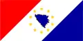 Этот флаг Боснии и Герцеговины был одним из трёх, представленных парламенту, назначенному Верховным представителем ООН. Во всех флагах использовались одни и те же цвета: голубой — цвет Организации Объединённых Наций, но он был заменён на более тёмный. Белые звёзды символизируют Европу. Жёлтый равнобедренный треугольник символизирует три основные группы населения страны (босняков, хорватов и сербов) и очертания страны на карте.