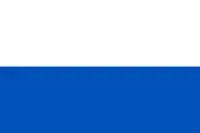 «Флаг района представляет собой прямоугольное полотнище из двух равновеликих горизонтальных полос: верхней белого и нижней синего цвета. Отношение ширины флага к его длине 2:3».[5]