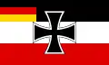 3. Торговый флаг с Железным Крестом (Handelsflagge mit dem Eisernen Kreuz) — такой же, как торговый флаг, но с изображением в верхнем углу, у древка, на государственных цветах, чёрного, окантованного белым креста в виде Железного Креста, который достигает половины ширины чёрной и половины ширины золотисто-жёлтой полосок.