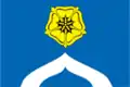 В зелёной части — жёлтая голова лося, обращённая в противоположную от древка сторону. В пурпурной части обращённая к древку жёлтая голова сокола, увенчанная жёлтой короной. В голубой части — жёлтый речной якорь».