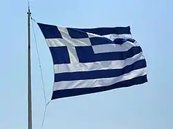 Флаг Греции (греч. Σημαία της Ελλάδας) представляет собой прямоугольное полотнище с горизонтальными равновеликими чередующимися пятью синими и четырьмя белыми полосами. В крыже помещено изображение прямого (греческого) креста белого цвета. Ширина флага относится к его длине как 2:3. Современный флаг был принят 27 декабря 1978 года.