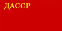 В Конституции ДАССР 1927 г. содержалось описание торгового и военного флага республики. Он состоял из полотнища красного (алого) цвета, в левом углу которого у древка наверху были помещены золотые буквы: «Дагестанская Автономная Советская Социалистическая республика»