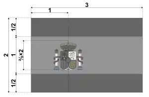 Флаг Испа́нии состоит из трёх горизонтальных полос — двух равновеликих красных, верхней и нижней, между которыми расположена жёлтая полоса, ширина которой в два раза больше каждой красной полосы. На жёлтой полосе на расстоянии 1/3 от древкового края полотнища расположено изображение герба Испании.