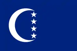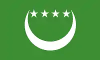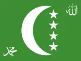 Государственный флаг Союза Коморских Островов в его настоящей форме был принят в 2002 году. Предыдущий флаг представлял собой полумесяц на зелёном фоне. На новом флаге полумесяц сохранён, но помещён в зелёный треугольник. Кроме того были добавлены четыре полосы, которые символизируют четыре острова архипелага: жёлтый символизирует Мвали, белый символизирует Майотту[1], красный символизирует Анжуан и синий символизирует Гранд-Комор. Четыре звезды рядом с полумесяцем также символизируют острова. Полумесяц символизирует ислам — главную религию Коморских Островов.