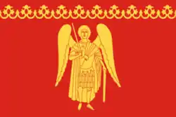 «Прямоугольное полотнище с отношением ширины к длине 2:3, воспроизводящее композицию герба Михайловского сельского поселения в жёлтом и красном цветах».