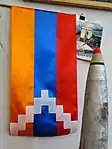 Разработан на основе армянского триколора[5], отличаясь зигзагообразным[6] узором белого цвета напоминающим орнаменты и узоры традиционных армянских ковров[7].