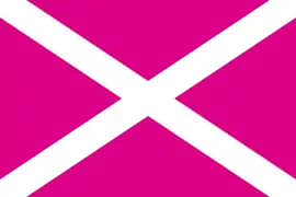- Дословные — повторяющие искомый флаг в основной части (окаймлённый Андреевский крест), с различными добавлениями, либо цветовыми альтерациями: