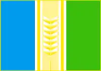 «Прямоугольное двухстороннее полотнище с отношением ширины к длине 2:3, воспроизводящее фигуры из герба Омского района, выполненные белым, жёлтым, зелёным, красным и синим цветом».
