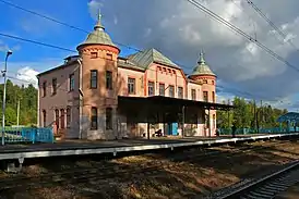Стилизованное здание символизирует историческое наследие старого Парголова, его постройки — дворец графа Шувалова и старинный вокзал.