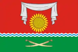 Деление полотнища символизирует географические особенности поселения — степные просторы отражены красным цветом, а богатая природа и большие урожаи — зелёным.
