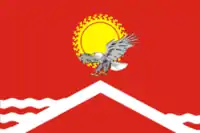 «Прямоугольное полотнище с соотношением ширины к длине 2:3, воспроизводящее композицию герба посёлка в красном, белом и жёлтом цветах».