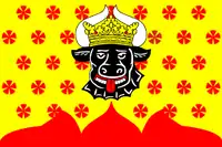 Геральдическое описание герба гласит: «В золотом поле усеянном червлёными (красными) цветками гвоздики с червлёной главой о четырёх пламевидных зубцах (два из которых видны наполовину) отвлечённая чёрная бычья голова с серебряными зубами и рогами и червлёным языком, увенчанная золотой короной о пяти видимых листовидных зубцах (три больших и два малых)».
