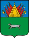 «Прямоугольное зелёное полотнище с отношением ширины к длине 2:3, несущее по центру изображение бегущего серебряного горностая с червлёным язычком и чёрным кончиком хвоста».
