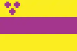 Во флаге воспроизведены фигуры из герба города Троицка три пурпурных креста.