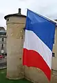 Флаг Франции с 1976 по 2020 год. Синий цвет более светлый. Утверждён Президентом д'Эстеном, чтобы синий цвет совпадал с цветом флага ЕС.