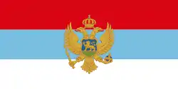 Флаг Черногории до утраты независимости в 1918 году представлял собой полотнище с тремя горизонтальными полосами, сверху вниз — красного, синего и белого цветов, и помещённым в центре государственным гербом (чтобы отличать от флага Сербии аналогичных цветов). Флаг был принят по аналогии с российским флагом; более того, военно-морской флаг Черногории представлял собой Андреевский флаг, то есть копию российского военно-морского флага.