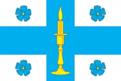 Геральдическое описание герба гласит: «В серебряном поле лазоревый крест, обременённый золотой горящей свечой в таковом же подсвечнике и сопровождённый четырьмя лазоревыми с золотыми сердцевинами цветками льна».