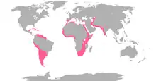 Фламинго распространены в тропических и субтропических регионах, изредка проникая в умеренные широты[12]. Наибольшее видовое разнообразие наблюдается в Южной Америке[22], где встречаются чилийский, андский, красный фламинго (Phoenicopterus ruber) и фламинго Джеймса (Phoenicoparrus jamesi). В Европе птицы обитают на юге Франции в заповеднике Камарг, на юге Испании; в Африке населяют озёра Марокко, Туниса, Мавритании, Кении, обитают на юге континента; в Азии известны колонии на юге Афганистана, северо-западе Индии, на Шри-Ланке[23]. Самые северные гнездовые популяции розового фламинго находятся на озёрах Тенгиз и Челкартенгиз в Казахстане[23][17], эти птицы обычно зимуют в Хазарском заповеднике в Туркменистане и Кызылагаджском заповеднике в Азербайджане. Изредка фламинго залетали в Санкт-Петербург, к Байкалу, в Исландию[23].