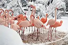 Несмотря на то, что фламинго часто считаются тропическими птицами, они могут выдерживать холодную температуру. На открытом воздухе в зоопарках их содержат при температуре до −6 °C, а в закрытых помещениях — при температуре около 10 °C и влажности 40—50 %[10].
