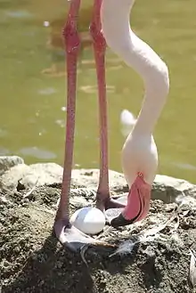 Кроме того, существует предположение, что блёклость оперения при неправильном кормлении уменьшает интерес птиц к спариванию[4]. Для стимуляции также используют аудиозаписи с вокализацией фламинго[30]. После того, как в Слимбридже в искусственное гнездо подложили деревянное яйцо, члены стаи стали касаться яиц клювами, словно проверяя их[4].