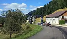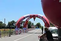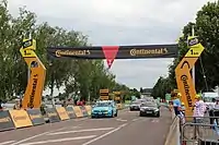 Обычно Flamme rouge располагается на надувной или жёстких арке различных видов с изображением главного спонсора.nolines