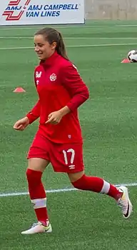 В 2012 году, в возрасте 14 лет, была включена в национальную программу подготовки футболистов. На следующий год со сборной девушек Канады (до 17 лет) завоевала серебряные медали на молодёжном первенстве КОНКАКАФ[4]. По итогам турнира была награждена «Золотым мячом» как самый ценный игрок чемпионата[5]. В 15 лет впервые вышла на поле в составе взрослой сборной Канады, став самым молодым её игроком за единственным исключением за всю историю выступлений[4].