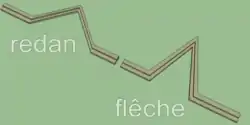 Состоят из двух фасов длиной 20—30 метров каждый под острым углом. Угол вершиной обращён в сторону противника.