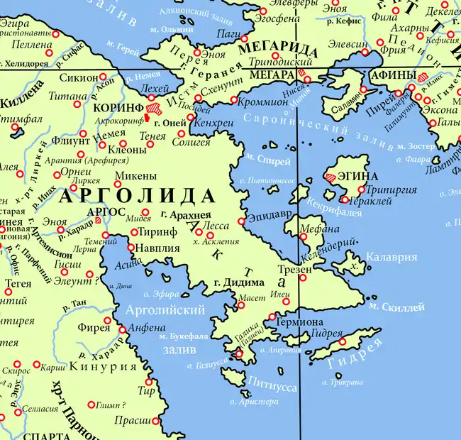 - Павсаний. Описание Эллады. / Перевод С. П. Кондратьева под редакцией Е. В. Никитюк. Ответственный редактор проф. Э. Д. Фролов. — СПб.: «Алетейя», 1996.