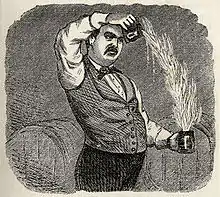 В это обычно суровое время года веселящая кружка яичного флипа и умиротворяющий стакан сиропа из бузины со специями пользуются большим спросом как средство приподнять упавшее настроение и согреть остывшее сердце… (англ. This usually inclement season of the year, the cheerful mug of egg-flip and the comforting tumbler of hot-spice, elder cordial are in great request as the means of raising low spirits and warming the cockles of the chilled heart…)[8]
